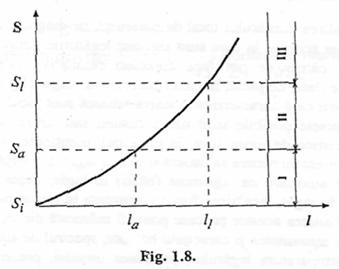 De exemplu, se presupune un parc a carui curba de distributie in functie de rulajul l este reprezentata de linia continua din fig.1.4, limitata de rulajele minim lmin si maxim lmax; deoarece 'variatia parcursului este mare, parcul se imparte in trei grupe precizate de rulajele intermediare l' si l', obtinandu-se astfel trei submultimi de obiecte limitate de intervalele de rulaj l'- lmin ,l'-l' si lmax -l', in interiorul carora se vor putea construi curbele de distributie particulare I, II si III cu parametrii respectivi. Acestora li se va aplica tratamentul descris anterior, determinandu-se trei perioade optime ld1,, ld2 si ld3