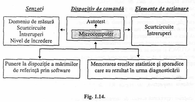 Dispozitivul de comanda se verifica singur, de exemplu prin memoria care are un model de test inmagazinat si care se citeste periodic. La memoriile de program se face o comparatie prin intermediul sumei de control care verifica datele si programele; concomitent se verifica si bus-ul de date si de adrese. La senzori se verifica daca semnalele se incadreaza in limitele normale ale valorilor lor si se pun in evidenta scurtcircuitele si intreruperile. Verificarea elementelor de actionare se poate face prin intermediu! valorii maxime a curentului in timpul comenzii.