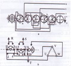Astfel in figura 1.18.a. Inversorul este relizat cu ajutorul unui comutator pachet.Este nevoie de sase etaje pentru a se realiza inversarea,iar in figura 1.18b. inversorul este realizat cu ajutorul unui comutator cu came-solutie care astazi este imbratisata tot mai mult ,data fiind existenta numai a comutatoarelor cu came.