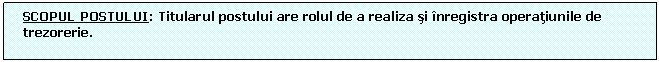 ASIGURĂ GESTIONAREA OPERAŢIUNILOR DE CASĂ CONFORM LEGISLAŢIEI IN DOMENIU