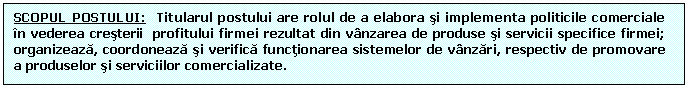 DENUMIREA POSTULUI: DIRECTOR VÂNZĂRI sI MARKETING