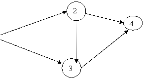 Fig. 3. Activitate fictiva (c) arata ca activitatile d si e nu pot incepe decat dupa terminarea activitatilor a si b