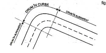 b - drum în curba: -este segmentul de drum cuprins între doua drumuri în aliniament;