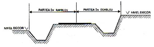 b - drum în debleu; atunci când partea carosabila este mai jos decât nivelul santurilor sau elementelor de decor;