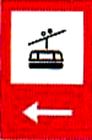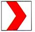 Acest indicator avertizeaza apropierea de o curba deosebit de periculoasa. Vârful sagetii indica directia curbei periculoase. Daca nu se cunoaste topografia locului respectiv se recomanda reducerea vitezei pâna în treapta a doua. În zona de actiune a indicatorului sunt interzise toate manevrele. |