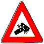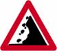 Indicatorul avertizeaza conducatorii de vehicule sa circule cu atentie întrucât sunt posibile caderi de pietre si sa paraseasca cât mai repede posibil zona de actiune a indicatorului. |