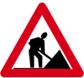 Indicatorul avertizeaza conducatorii de vehicule apropierea de un sector unde se executa lucrari la partea carosabila. La întâlnirea lui conducatorii de vehicule trebuie sa circule cu atentie si sa respecte semnalizarea temporara din zona respectiva. |