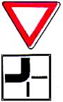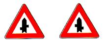 Pozitia conducatorului de vehicul este pe drumul de la baza tablitei aditionale fiind obligat sa acorde prioritate vehicu lelor care circula pe drumul prioritar imbolizat prin linia mai groasa. |