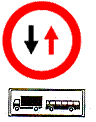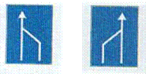 Primul indicator indica faptul ca drumul se îngusteaza pe ambele sensuri de deplasare. Al doilea indicator avertizeaza conducatorii auto fie ca se face trecerea de la doua benzi de circulatie la una singura fie ca banda pe care circula se îngusteaza datorita unor obstacole sau lucrari. Al treilea indicator avertizeaza conducatorii auto ca banda de circulatie destinata circulatiei din sens invers se îngusteaza. Pe sectorul de drum îngustat sunt interzise urmatoarele manevre: oprirea, stationarea, întoarcerea, mersul înapoi. Depasirea este permisa daca nu se pericliteaza siguranta celorlalti participanti la trafic si interzisa atunci când indicatorul este însotit de unul din indicatoarele " Prioritate pentru circulatia din sens invers", " Prioritate fata de circulatia din sens invers" . |