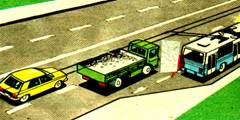 Un autovehicul poate tracta pe drumul public o singura remorca. Se excepteaza autotractorul care poate tracta doua remorci, precum si autovehiculele amenajate pentru formarea unui autotren de transport persoane in localitatile turistice, cu conditia ca acesta sa nu fie mai lung de 25 m si sa nu circule cu viteza mai mare de 25 km/h. |