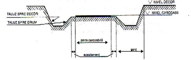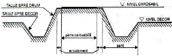 - santurile sau rigolele - amenajarea laterala dispusa la marginea platformei drumului; |