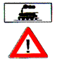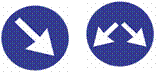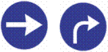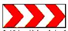 Acest indicator avertizeaza apropierea de o curba deosebit de periculoasa. Vârful sagetii indica directia curbei periculoase. Daca nu se cunoaste topografia locului respectiv se recomanda reducerea vitezei pâna în treapta a doua. În zona de actiune a indicatorului sunt interzise toate manevrele. |