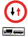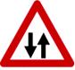 Primul indicator indica faptul ca drumul se îngusteaza pe ambele sensuri de deplasare. Al doilea indicator avertizeaza conducatorii auto fie ca se face trecerea de la doua benzi de circulatie la una singura fie ca banda pe care circula se îngusteaza datorita unor obstacole sau lucrari. Al treilea indicator avertizeaza conducatorii auto ca banda de circulatie destinata circulatiei din sens invers se îngusteaza. Pe sectorul de drum îngustat sunt interzise urmatoarele manevre: oprirea, stationarea, întoarcerea, mersul înapoi. Depasirea este permisa daca nu se pericliteaza siguranta celorlalti participanti la trafic si interzisa atunci când indicatorul este însotit de unul din indicatoarele " Prioritate pentru circulatia din sens invers", " Prioritate fata de circulatia din sens invers" . |