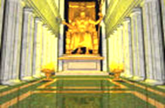 STATUIA LUI ZEUS DIN OLYMPIA, casa jocurilor olimpice, a fost inlatata in 433 i.Hr, de catre Phidias din Atena. Statuia din lemn avea o inaltime de 12m si a fost acoperita cu fildes si aur.