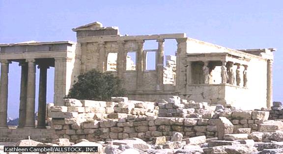 Pe langa Parthenon, pe Acropolis se mai afla si mai micul templu al lui Atena Nike, Erecteum, cu cariatidele lui distinctive (stalpi sculptati sub forma de femei) si o mare poarta de intrare, numita Propylea.