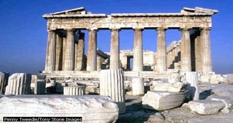 Cel mai mare templu Parthenonul, a fost construit în onoarea zeitei patroane a orasului, Atena, în secolul V î.e.n.. În ciuda deteriorarilor enorme, templul a rezistat în timp pâna în zilele noastre. Parthenonul are ideea armonioasa pentru care Grecia este recunoscuta. Partenon reprezinta unul din pilonii complexului arhitectural de pe Acropole.
