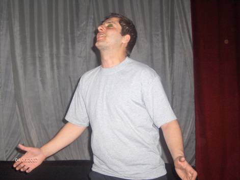 Oedip, la sfarsitul monologului. Spect. sustinut la Casa de cultura din Rupea. Foto Simina Contras |