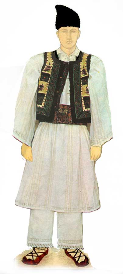 Recalele "rumanesti" potrivite muncii nu stingheresc miscarile. Tinerii poarte recale "domnesti" sau "nemtasti" lucrate de croitori, cu guler de postav sau de astrahan, cu buzunare, aplicatii de postav colorat vanat pe margini, cusut cu ata galbena etc.