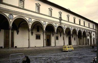 Prima cladire renascentista a arhitectului florentin este Ospedale degli Innocenti, Spitalul copiilor gasiti, construit între 1419 si 1424. Lucrarea a fost executata pe cheltuiala breslei negustorilor de matase si a breslei aurarilor si reprezinta prima cladire cunoscuta, destinata adapostirii copiilor orfani. Compozitia, în ansamblu, are o logica neobisnuita pentru epoca respectiva; cel mai mare interes îl prezinta elevatia principala a cladirii.