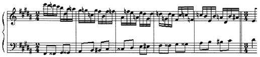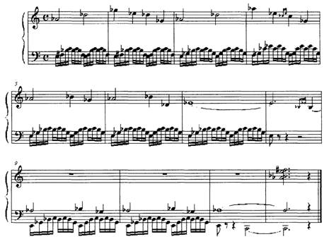 Scriitura acestui segment de piesa este enarmonica fata de prezentarea tematica initiala