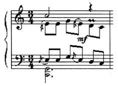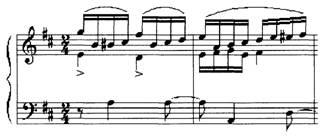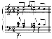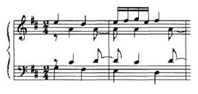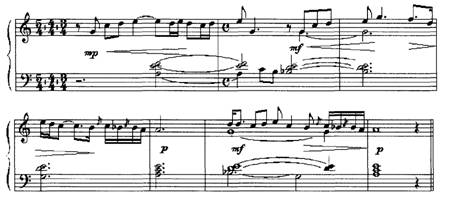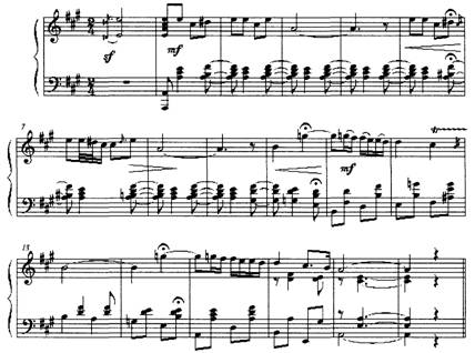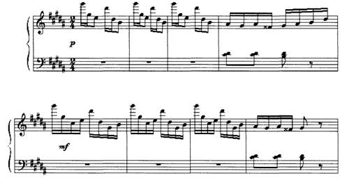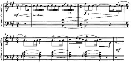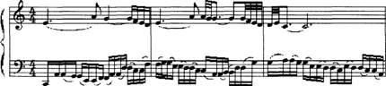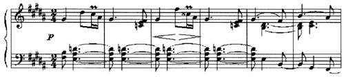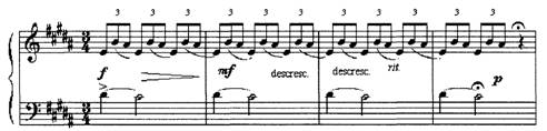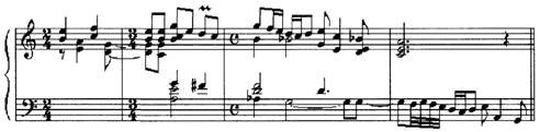 Introducerea de doua masuri pe nota tinuta capata aici valoare de anacruza prin mersul rapid ascendent al lui Mi major ca dominanta a