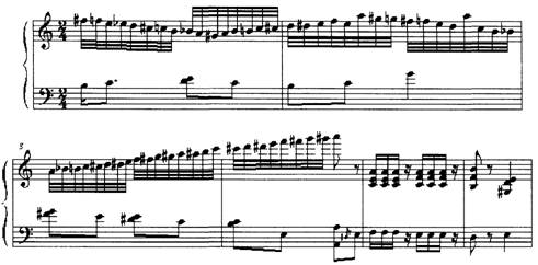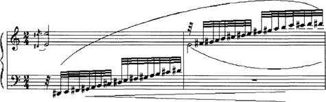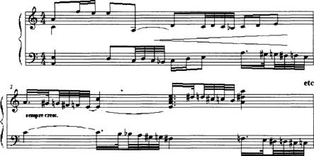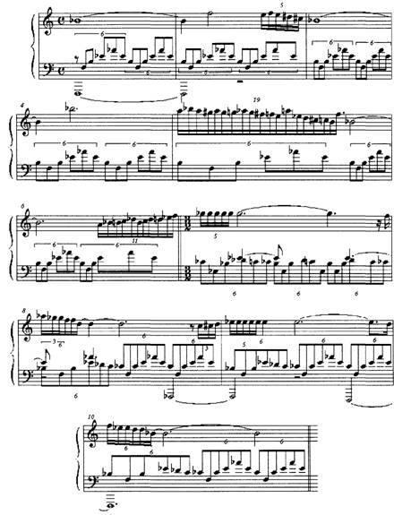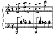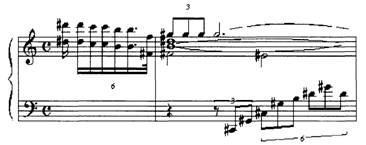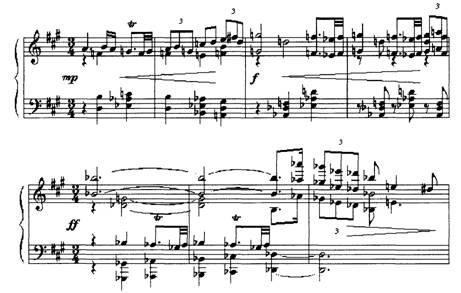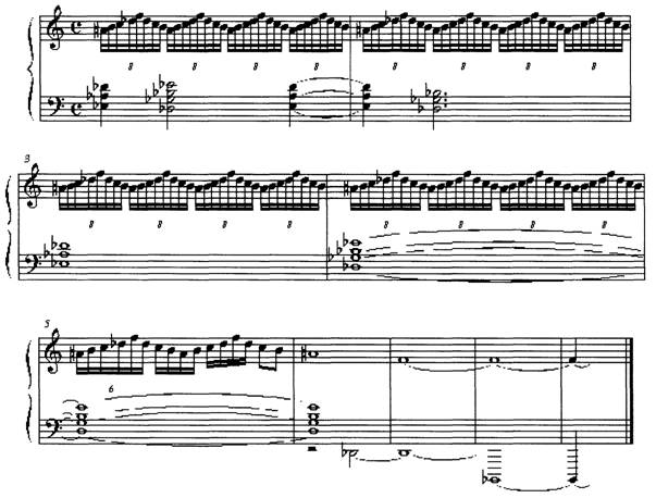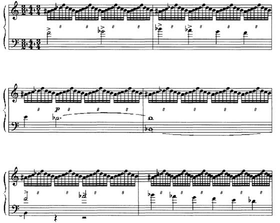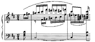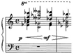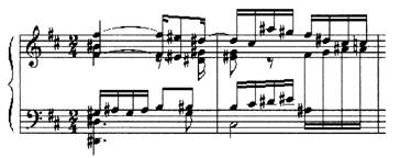 Nu lipsesc nici aglomerarile acordice si migrarile planurilor sonore, in mersuri contrare, spre extremele claviaturii.
