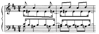 Este interesanta insistenta compozitorului pe formulele sincopate pe sferturi de timp (uneori in suprapunere cu sincope pe jumatati de timp)