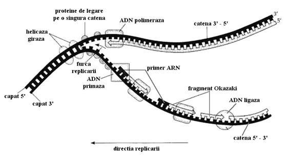 bifurcatia de replicare construindu-se astfel catena in directia 5`-3`.