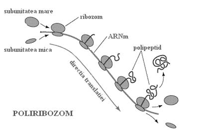 Mai multi ribozomi pot citi simultan acelasi ARN mesager pe care il parcurg in acelasi sens. Se constituie astfel un poliribozom, structura ce permite accelerarea sintezei proteice.