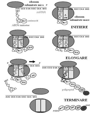 Biosinteza proteinelor (translatia) se realizeaza in 5 etape: