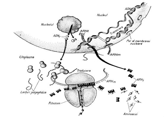 Sinteza proteica - vedere de ansamblu: (dupa Gray's anatomy)