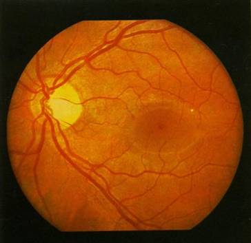 Discul normal este roz sau portocaliu, cu o excavatie (cupa), galben - palida in centrul lui. Jumatatea temporala a discului este totdeauna mai palida decat jumatatea nazala, este mult mai transparenta si contine mai putine capilare si manunchiuri de fibre papilo-maculare mult mai subtiri.