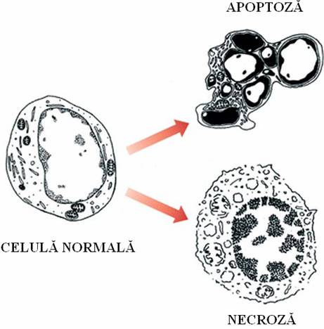 Necroza si apoptoza reprezinta doua forme distincte de moarte celulara care se deosebesc prin particularitati morfologice si biochimice la nivelul celulelor implicate.