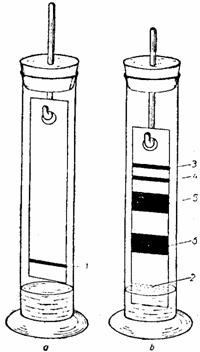 pe unitatea de timp, se īnfasoara eprubeta cu hārtie neagra