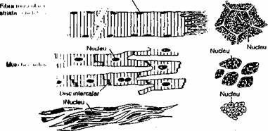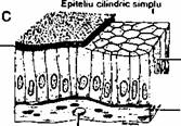 Fig. 2.2. Exemple de tesuturi epiteliale: A) epiteliu pivamento's stratificat moale; B) epiteliu de tranzitie (uroteliu); C) epiteliu pseudostratifidat - celulele calciforme secreta mucus, care formeaza un strat