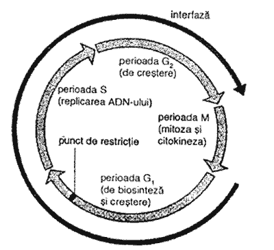 Reproducerea organismului are la baza sa reproducerea celulara. Perioada ce se deruleaza intre doua diviziuni mitotice alcatuieste ciclul celular (din gr. kyklos - cerc). Ciclul celular cuprinde interfaza si diviziunea celulei (fig.1).