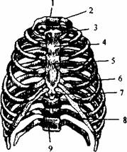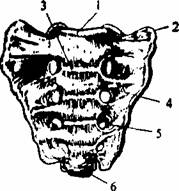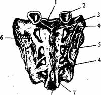 vertebral: 5. proces spinos; 6. canal vertebral;