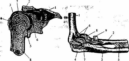 în articulatia cotului se fac miscari de flexie-extensie a antebratului, rotatie laterala sau supinatie si rotatie mediala sau pronatie. Suprafetele articulare sunt pe de o parte trohleea humerala si capitulum humeral, iar pe de alta parte incizurea trohleara a ulnei si foseta capului radial. Articulatia cotului este alcatuita din articulatia dintre humerus si oasele antebratului (articulatia humero-antebrahiala) în care se fac miscari de flexie si extensie si din articulatia radioulnara superioara între radius si ulna, în care se executa miscari de rotatie.