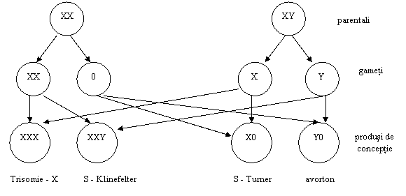 Fig. nr. 1 Nondisjunctia in spermatogeneza (A), in