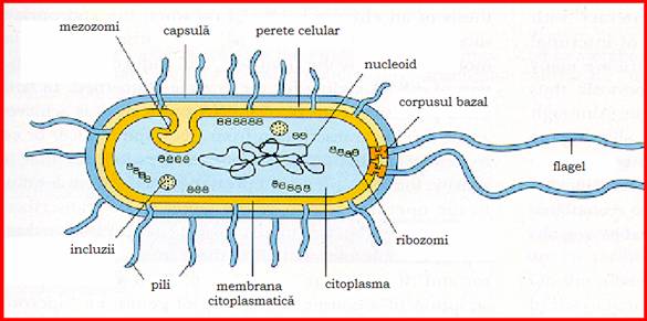 Ribozomii. Se apreciaza ca o celula bacteriana are 20.000 de ribozomi ce contin 80-90% din ARN-ul citoplasmatic. Ribozomii reprezinta sediul sintezelor proteice din celula.