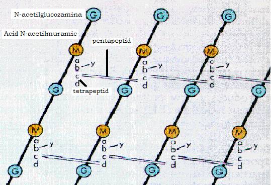La bacteriile gram - pozitive, peptidoglicanul are o grosime de 15-30 nm si contine pana la 200 de lanturi paralele de mureina.