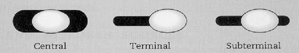 Pozitia sporului bacterian constituie un caracter taxonomic. Poate fi centrala, subterminala si terminala.