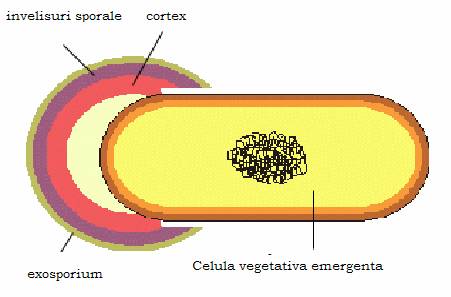 Unele bacterii se transforma in spori, care sunt forme primitive de diferentiere celulara, cu rezistenta crescuta la factorii de mediu si care apar endocelular in conditii nefavorabile de viata. Ei au un invelis rezistent, format din mai multe straturi datorita caruia rezista in mediul extern zeci de ani. Sporogeneza se intalneste numai la 2 genuri de bacterii gram-pozitive de interes medical, Clostridium si Bacillus.