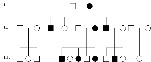 2. Daca un barbat afectat se casatoreste cu o femeie sanatoasa si homozigota, nu va transmite boala fiilor (transmiterea tata → fiu este deci imposibila, deoarece acestia nu pot mosteni gena anormala de pe cromozomul X) sau prin fii la generatiile urmatoare; in schimb, toate fetele vor fi heterozigote, purtatoare (deoarece ele primesc cromozomul X afectat).