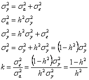 Una din cele mai importante proprietati ale unui caracter cantitativ este heritabilitatea (simbolizata prin h2). Ea exprima proportia din varianta totala (VP) care poate fi atribuita efectului mediu al genelor, fiind definita ca raportul dintre variatia genetica aditiva (sau varianta valorii de ameliorare) si varianta fenotipica: