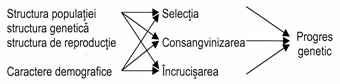 Actiunea factorilor ameliorarii si efectul lor, modificarea genetica a populatiilor depind de: structura de reproductie a populatiilor, caracterele demografice ale populatiilor (natalitate, mortalitate, precocitate, etc.) si de sistemul genetic al populatiei.