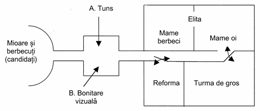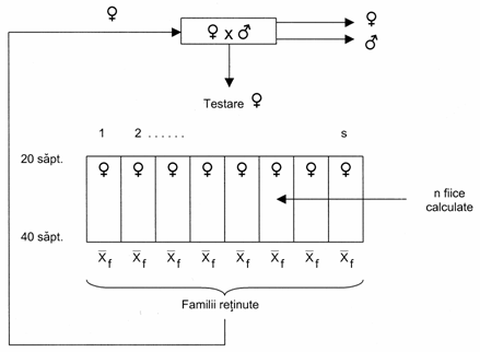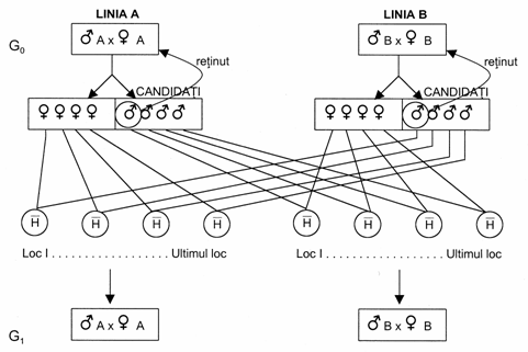 Liniile materne trebuie sa fie selectionate, in primul rand pentru insusirile de reproductie si, in al doilea rand, pentru caracterele de productie, iar liniile paterne pentru insusirile de productie (figura 33).