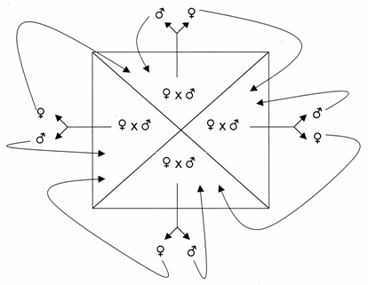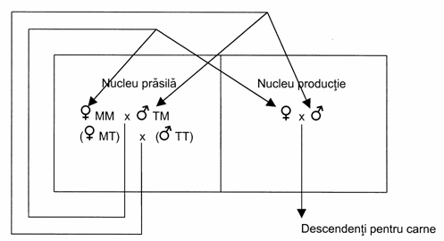 Este incrucisarea femelelor dintr-un efectiv de exploatare cu masculi ce apartin la 2 - 3 - 4 populatii diferite (figura 32).