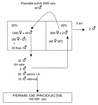 un nucleu de inmultire a rasei materne, o ferma de simpla hibridare, o ferma de dubla hibridare (pe langa sectorul de crestere si ingrasare).