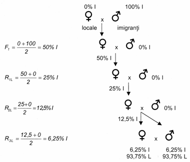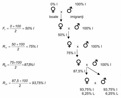 In primele generatii de heterogamie se observa o uniformizare a populatiei.